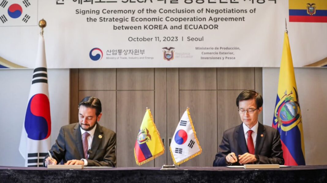 Así va el acuerdo con Corea Las autoridades de Ecuador y Corea del Sur realizaron el 10 de octubre la prefirma del Acuerdo Estratégico de Cooperación Económica (SECA, por sus siglas en inglés), un paso previo para la firma final del acuerdo.