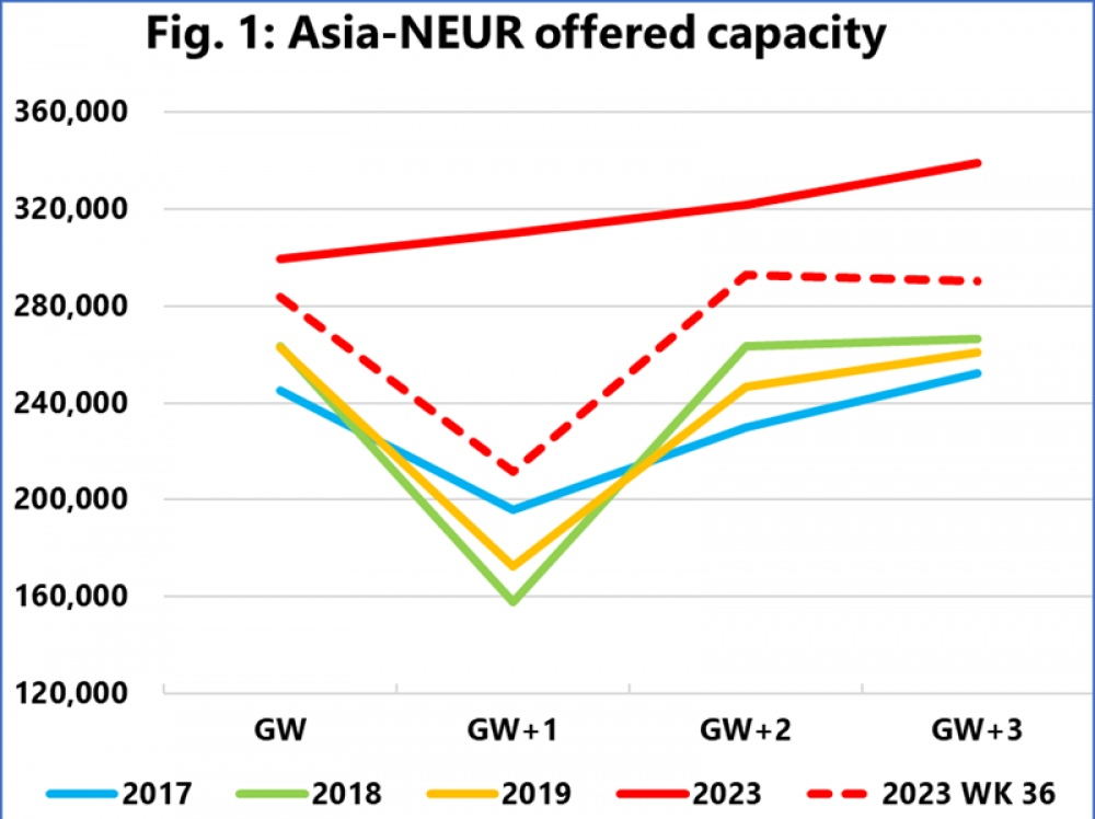 Lo anterior para ya estar ocurriendo. De hecho, es habitual que ante la celebración de la Semana Dorada en China (a principios de octubre)- que provoca el cierre de fábricas la disminución del volumen de contenedores enviados hacia y desde Asia- las líneas navieras aumentan los blank sailings para igualar la oferta con la menor demanda.