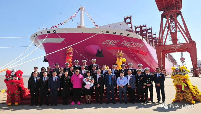 One Freedom, el primer buque portacontenedores de 15.000 TEU construido por Yangzijiang Shipbuilding para Seaspan, partió en su viaje inaugural.