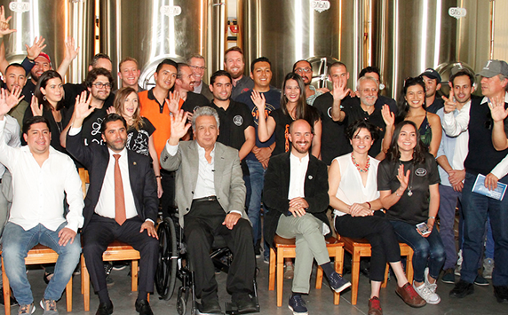 El presidente de la República, Lenín Moreno, junto al ministro de Producción, Comercio Exterior, Inversiones y Pesca, Iván Ontaneda Berrú, participaron en el encuentro con cerveceros artesanales en Quito.