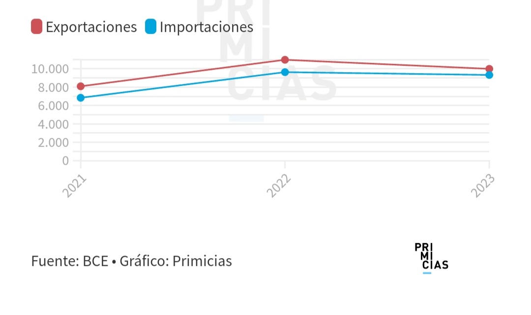 La balanza comercial no petrolera de Ecuador cerró con superávit entre enero y abril de 2023. Esto quiere decir que el valor de las exportaciones no petroleras fue mayor al de las importaciones no petroleras, según el Banco Central.