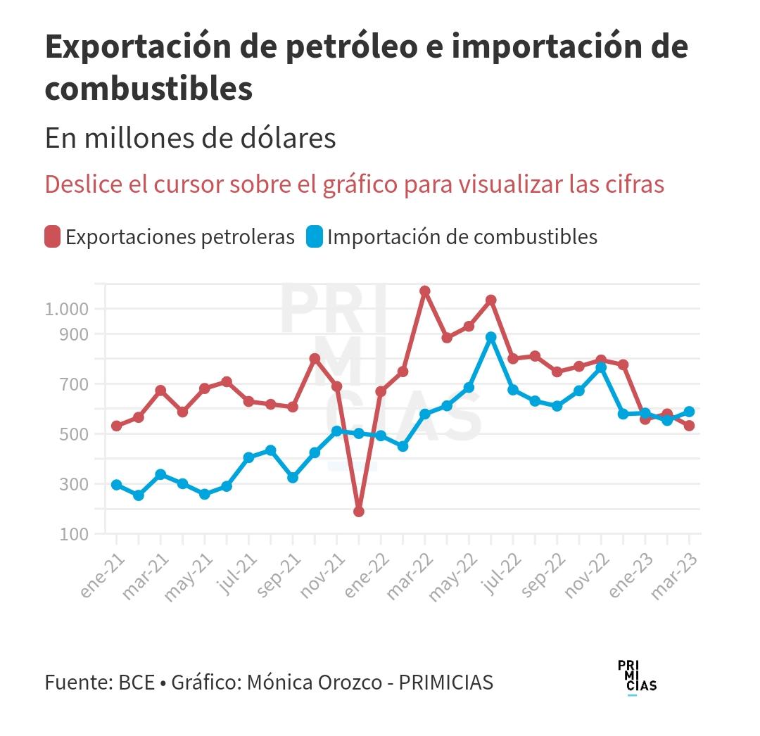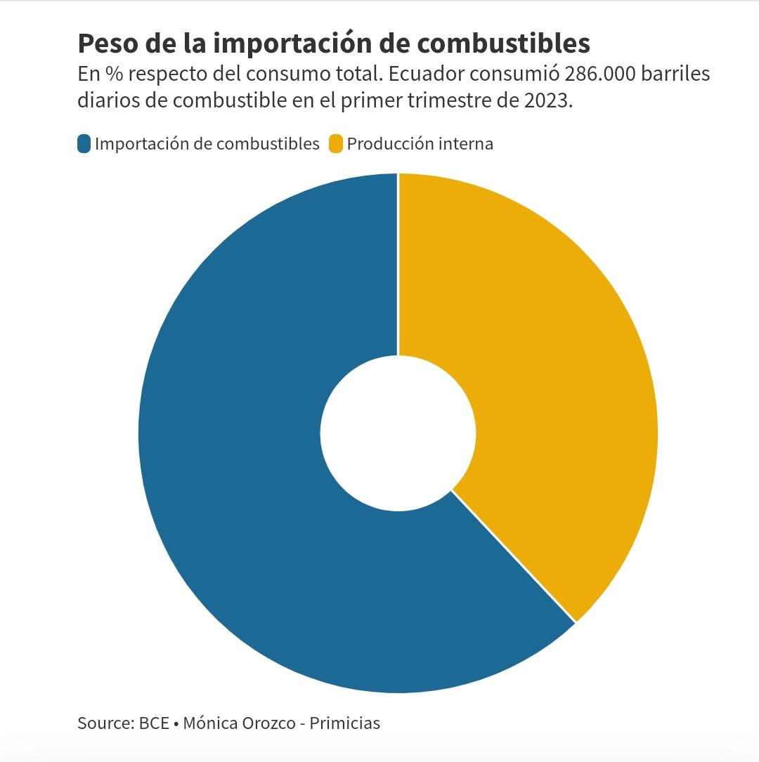Los ingresos por exportaciones de petróleo ya no son suficientes para financiar la importación de combustibles en Ecuador. Durante el primer trimestre de 2023, el Estado importó USD 1.724 millones en combustibles como gasolinas, diésel y GLP.