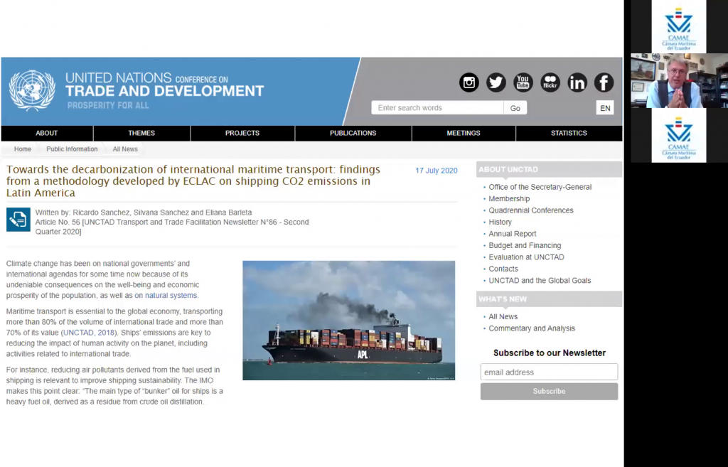 La Cámara Marítima del Ecuador – CAMAE organizó el webinar «La huella de Carbono en la industria Marítima y Portuaria» el que fue impartido por reconocidas personalidades de la academia y de la industria a nivel mundial.