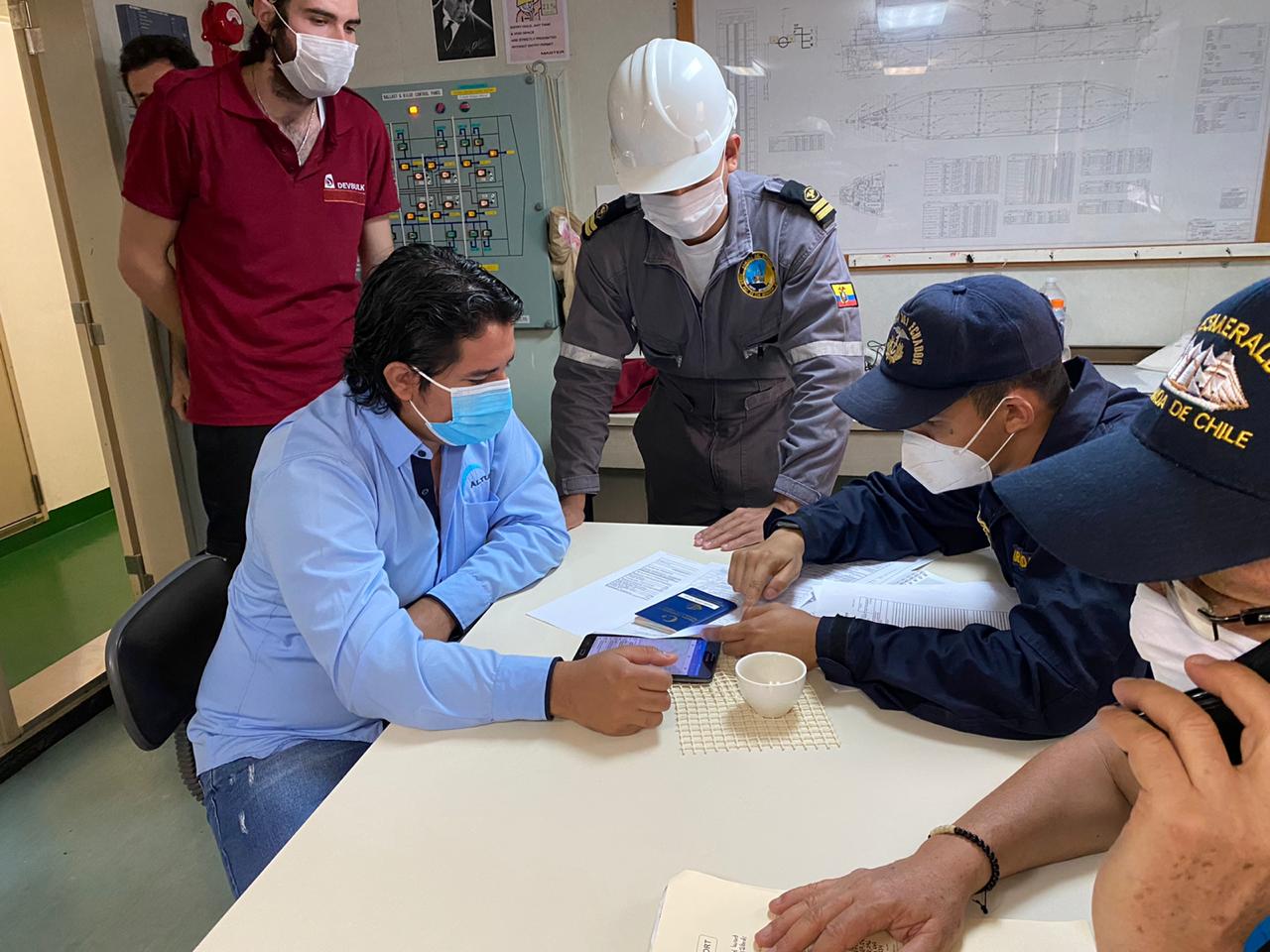 El martes 1 de septiembre del 2020, el señor TNNV-GC Leandro Miño Rodríguez, procedió a la verificación, evaluación de conocimientos y control físico de los procedimientos empleados por parte del personal asignado por la Capitanía de Puerto de Guayaquil y del Equipo Electrónico (Tablet), que se usará continuamente en el cumplimiento del flujo para la Libre Plática Online – LPOL, evento que se llevó a cabo a bordo de la embarcación LADY CANSEN; en cuya maniobra de evaluación, capacitación y control, aportaron con su profesionalismo en base a una guía técnica en sistemas informáticos el señor SGOS-IF Neiter Villacreses Zambrano (DIRNEA-CETEIN) y el señor Ing. Ángel Mera representante de la empresa ALTURA, recibiendo la apertura de dicha enseñanza y aplicación de lo aprendido el señor representante de la Capitanía de Puerto en mención y 01 Agente Naviero como representante legal en el Ecuador – Naviera ANDINAVE S.A de la nave abordada.