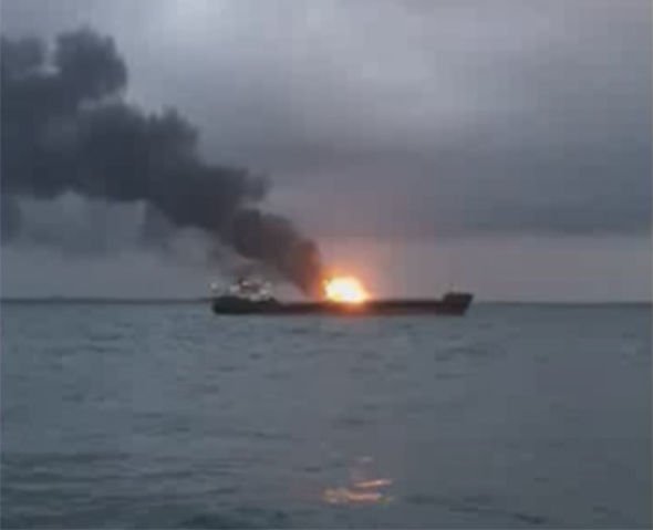Al menos diez miembros de una tripulación murieron luego que dos barcos se incendiarán, mientras navegaban por el disputado Estrecho de Kerch-Mar Negro en la costa de Crimea, según fuentes Ministerio de Transporte ruso.