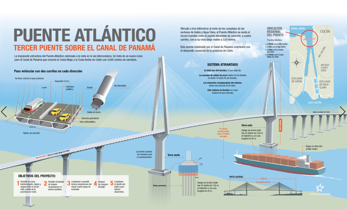 El nuevo Puente Atlántico, el tercero sobre el Canal de Panamá, conecta al país y su litoral Atlántico a través de la Costa Abajo de la provincia de Colón con un paso ininterrumpido.