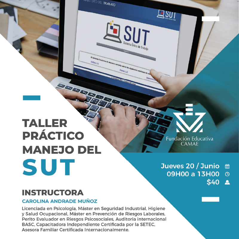 Taller Práctico Manejo del SUT – Sistema Único del Trabajador del Ministerio del TrabajoJun202019 Cuándo: jueves 20 de junio, 2019 a las 13:43 📅 Fechas 20/06/2019🕢 Horario 09h00 – 13h00 (Duración 8 Horas)📞 Teléfonos 04 256- 4644 ext. 103 – 114 +593 998 456338 – +593 998 699155 Compartir