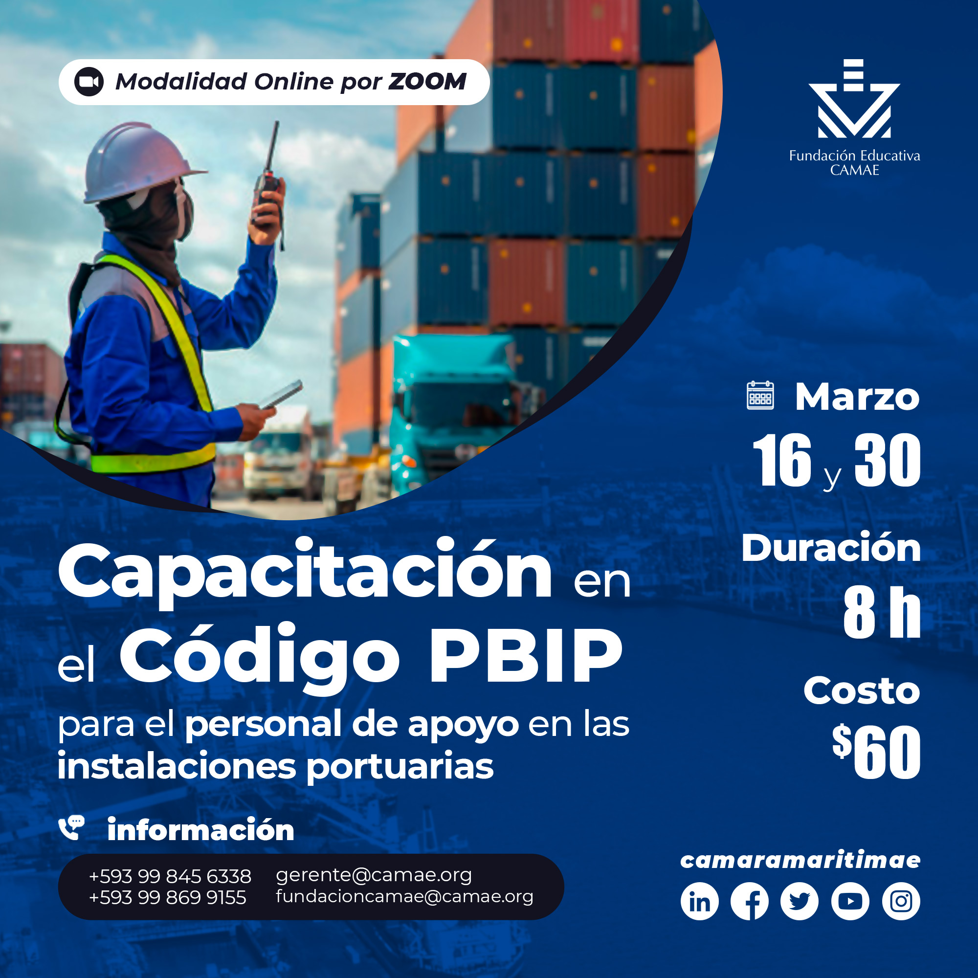 Estamos autorizados por la Subsecretaría de Puertos y Transporte Marítimo y Fluvial (#SPTMF) para impartir capacitación válida como requisito para la emisión o renovación de la matrícula nacional (carné marítimo valido en todos los puertos del Ecuador).