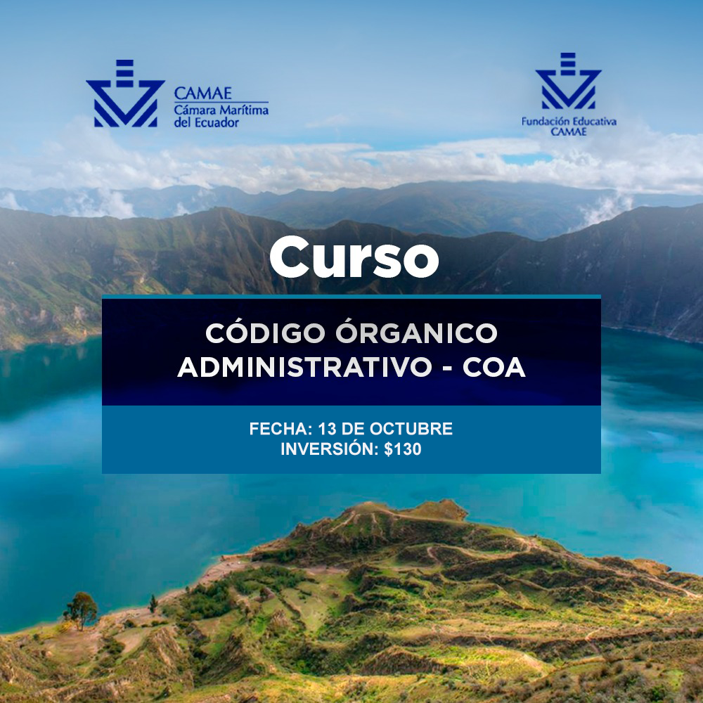 Código Orgánico Administrativo – COAOct132018 Cuándo: sábado 13 de octubre, 2018 a las 09:00 Instructor: Abg. Denisse Rendón Horas: 8 Horario: 09h00-17h00 Día: Sábado Fecha: 13/10/2018 Lugar: CAMAE Inversión: $130 Compartir