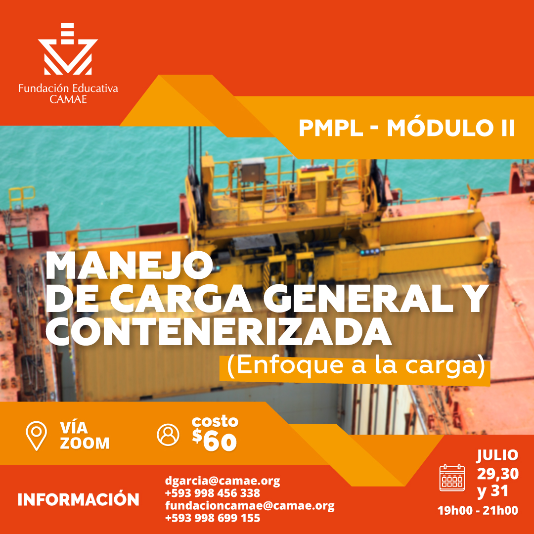Manejo de carga general y contenerizada (enfoque a la carga)Jul292020 Cuándo: miércoles 29 de julio, 2020 a las 19:00 INSTRUCTOR Ec. Fernando DonosoFECHA JULIO 29 – 31 HORA 19h00-21h00curso será dictado vía ZoomInscríbete con anticipación: dgarcia@camae.org o fundacioncamae@camae.org +593 998 456338 – +593 998 699155 Compartir