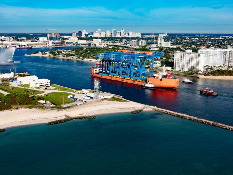 Port Everglades recibió tres grúas pórtico STS para contenedores Súper Post-Panamax, en el marco del proyecto de US$471 millones del terminal para ampliar su área de giro en aguas profundas para buques de carga. La adquisición eleva el número total de grúas del puerto de Florida, EE.UU., a seis Súper Post-Panamax, siete Post-Panamax, una Paceco y una grúa portuaria móvil.
