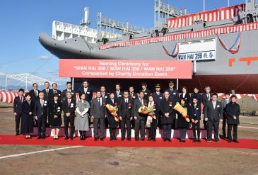 Wan Hai Lines Ltd. celebró ceremonias de nombramiento de barcos para Wan Hai 356, Wan Hai 358 y Wan Hai 359 acompañadas de una donación benéfica en el Astillero Tsu de Japan Marine United Corporation.