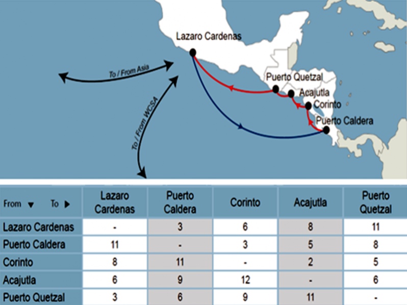 El itinerario del servicio ‘Maya’ contempla recaladas en los puertos de Lázaro Cárdenas, Caldera,Corinto, Acajutla, Puerto Quetzal y Lázaro Cárdenas