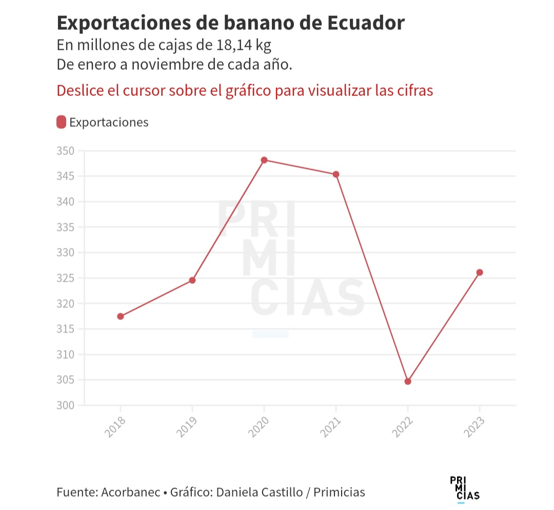 El 2023 fue un año positivo para las exportaciones de banano. Según las estimaciones de la Asociación de Comercialización y Exportación de Banano (Acorbanec), las exportaciones crecieron cerca de 7% en volumen y 10% en valor.