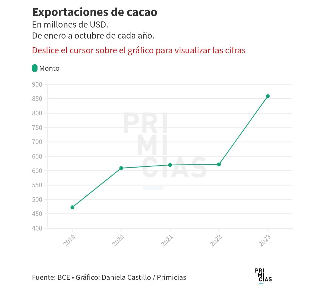 El 2023 fue un buen año para el sector cacaotero, que hasta octubre alcanzó un crecimiento 33,5% en el valor de sus exportaciones, según el BCE. Estados Unidos es el principal mercado de las exportaciones de cacao de Ecuador’; otros importantes son Indonesia y Malasia.