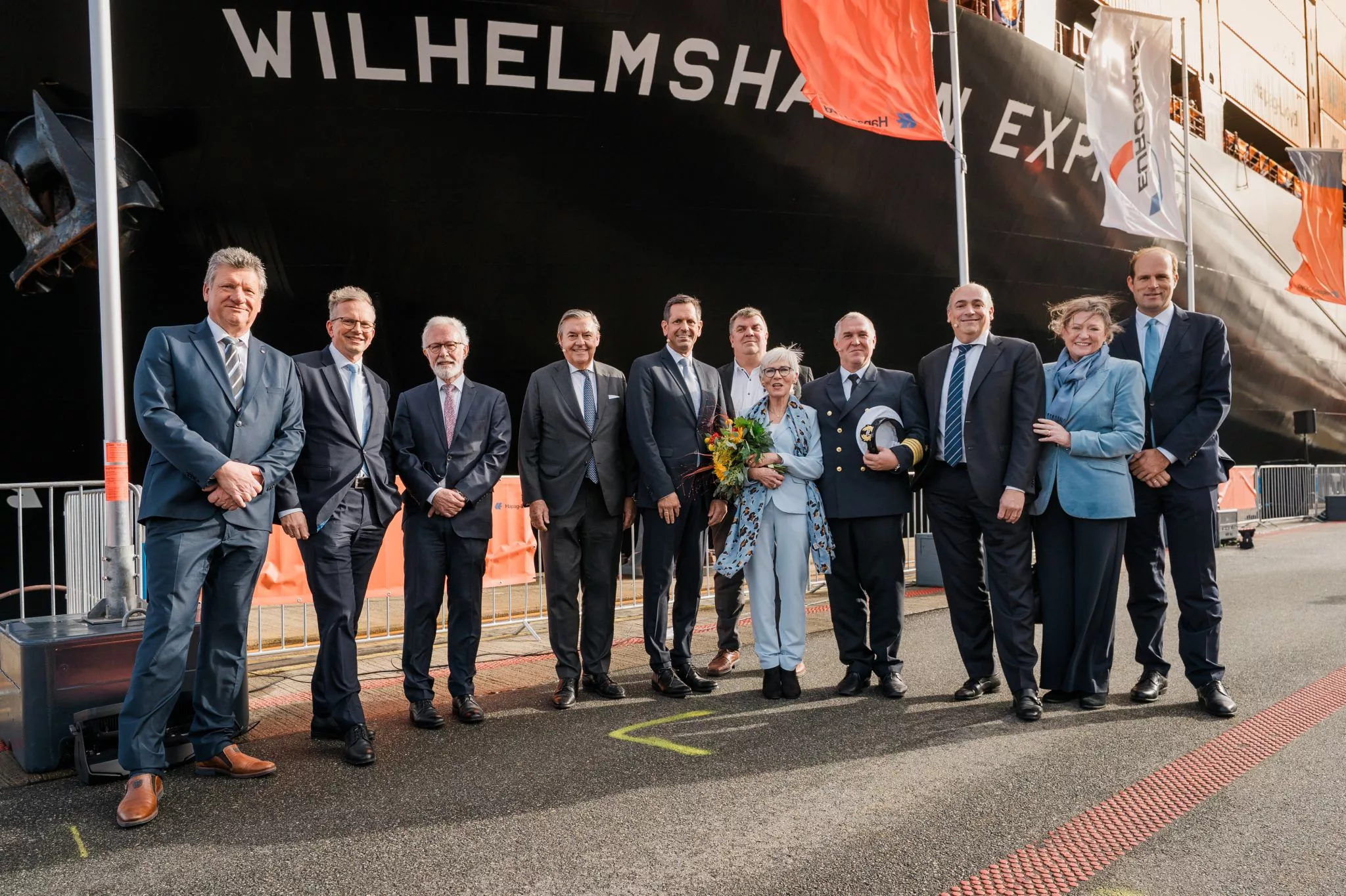 La naviera Hapag-Lloyd celebró el bautizo del “Wilhelmshaven Express” en el puerto Jade Weser de Alemania, marcando la incorporación del duodécimo y último buque de la clase Hamburgo, con 23.660 TEUs de capacidad y propulsión dual de GNL y biometano.