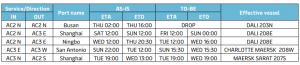 Por lo anterior descrito, Maersk mencionó en un comunicado que ha decidido eliminar la llegada al puerto de Busan en la ruta dirección norte. La carga con destino a Busan será atendida por la ruta dirección este.