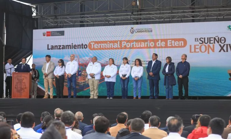 La presidenta Dina Boluarte y el ministro de Transportes, César Sandoval, encabezaron el lanzamiento oficial del Terminal Portuario Multipropósito de Eten, en Lambayeque. Con la entrega, se inicia un proyecto clave para modernizar e impulsar el comercio internacional del Perú.