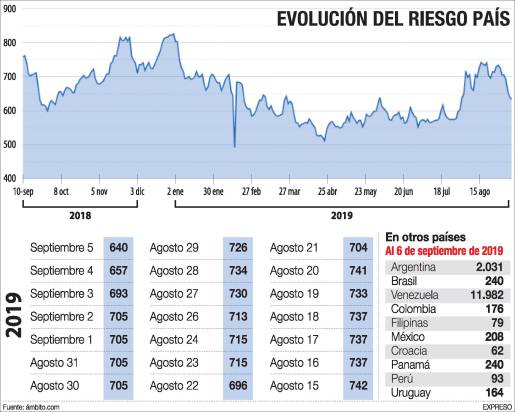 Si bien el riesgo país ha bajado en las últimas semanas, aún se mantiene por encima de los 600 puntos.