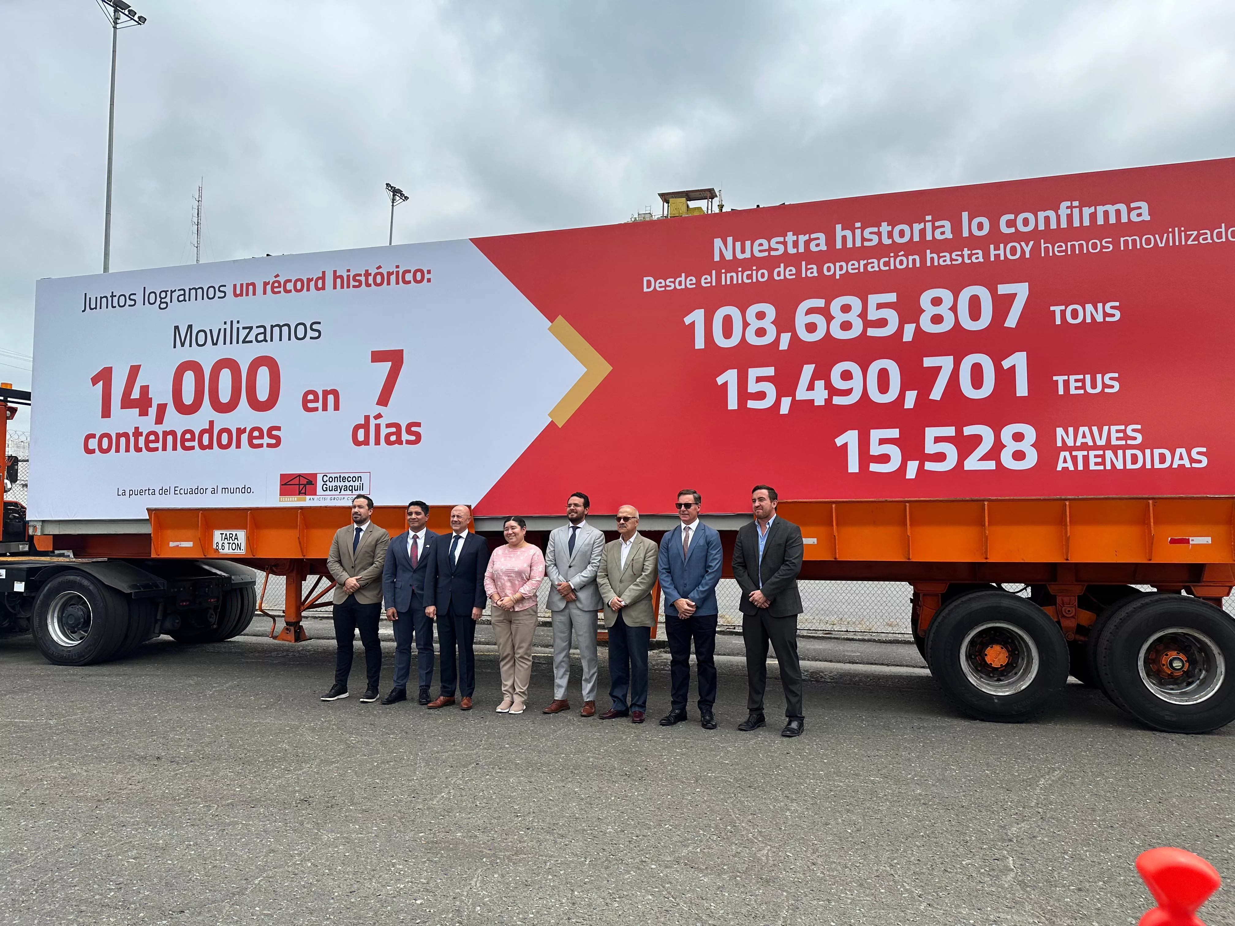 Contecon logró movilizar 14.000 contenedores en siete días, consolidándose como la terminal más eficiente de Guayaquil. El evento contó con la participación de exportadores, líneas navieras y autoridades del Ministerio de Transporte, reconociendo su desempeño logístico.